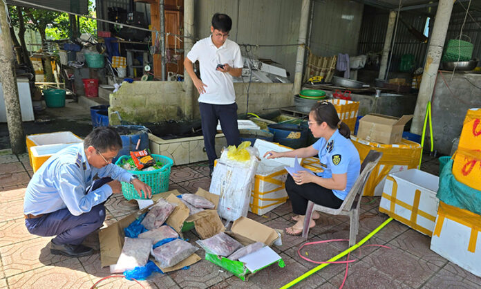 Trong quá trình kiểm tra đột xuất hộ kinh doanh do bà Ngô Thị Hồng Nhung làm chủ (trú tại tổ dân phố 4), lực lượng chức năng phát hiện 268,5 kg thực phẩm gồm chả cá, chả ram tôm, nõn tôm, thịt bò và nội tạng động vật (dạ con) không có hóa đơn, chứng từ hợp lệ…