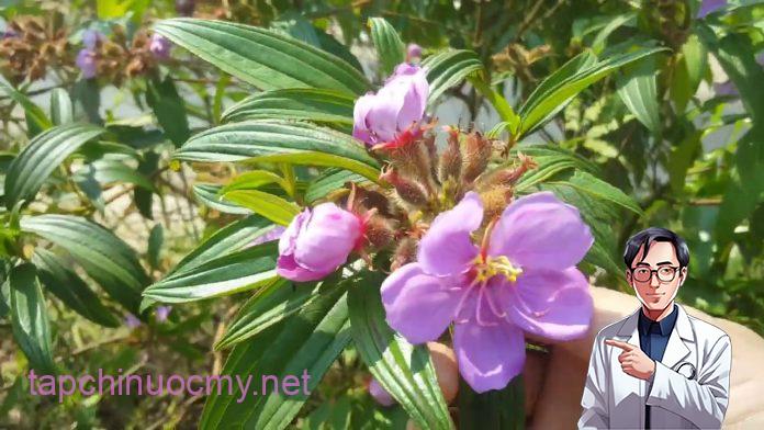 Cây mua cao khoảng 1m, thân, cành và lá có lông nhám màu nâu, mọc dày sần sùi; lá mọc đối, phiến lá hình bầu dục, mặt trên ráp, mặt dưới nhiều lông mềm; có 5-7 gân nổi rõ, mép nguyên. Hoa to có phấn, màu hồng tím, thường mọc 2-3 đóa ở đầu cành. Quả hình trứng, có lông. Để làm thuốc, thu hái toàn bộ cây dùng riêng hoặc phối hợp với những vị thuốc khác dưới dạng thuốc sắc.