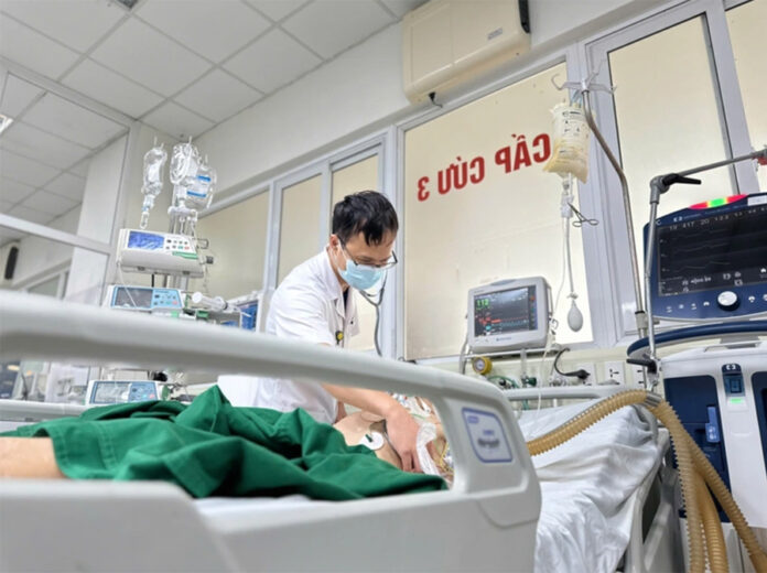 Bác sĩ thăm khám cho bệnh nhân nhiễm liên cầu lợn. (Ảnh: BVCC).