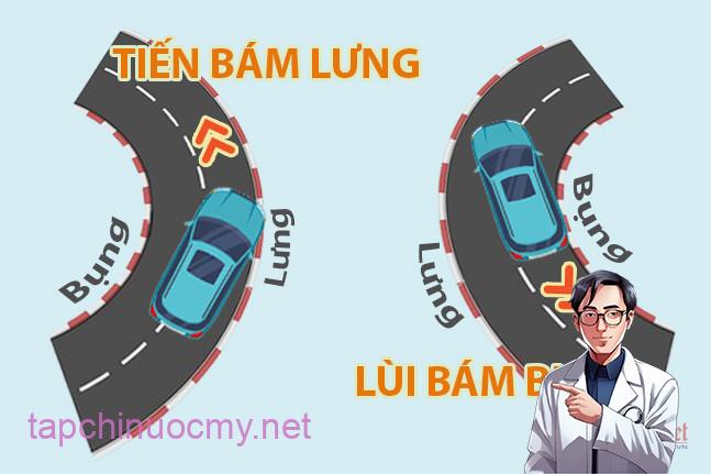 “Tiến bám lưng” có nghĩa là khi đi theo hướng về phía trước ở đoạn đường cong, nếu không muốn bánh sau bị “chém vỉa” thì phải mở rộng vòng cua để phía đầu xe sát với phần lưng của đường.