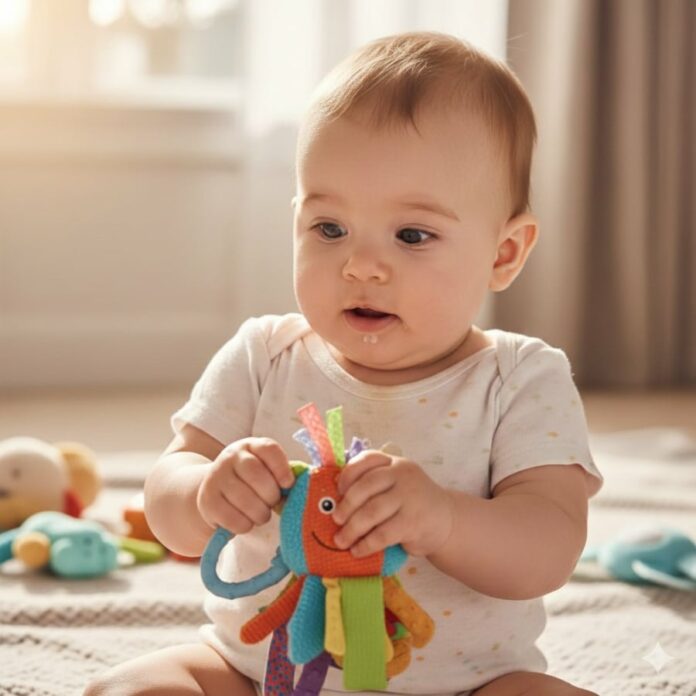 Khi nhiều trẻ vẫn còn cử động khá rời rạc, có bé đã biết nắm chắc đồ vật, tự đưa thức ăn lên miệng, lăn người thuần thục, thậm chí cố gắng ngồi dậy khi được đỡ. Đôi tay nhỏ xíu của trẻ luôn “bận rộn”: chạm vào các bề mặt khác nhau, bóp giấy, xoay đồ chơi hay thử nhét ngón tay vào những khe hẹp.