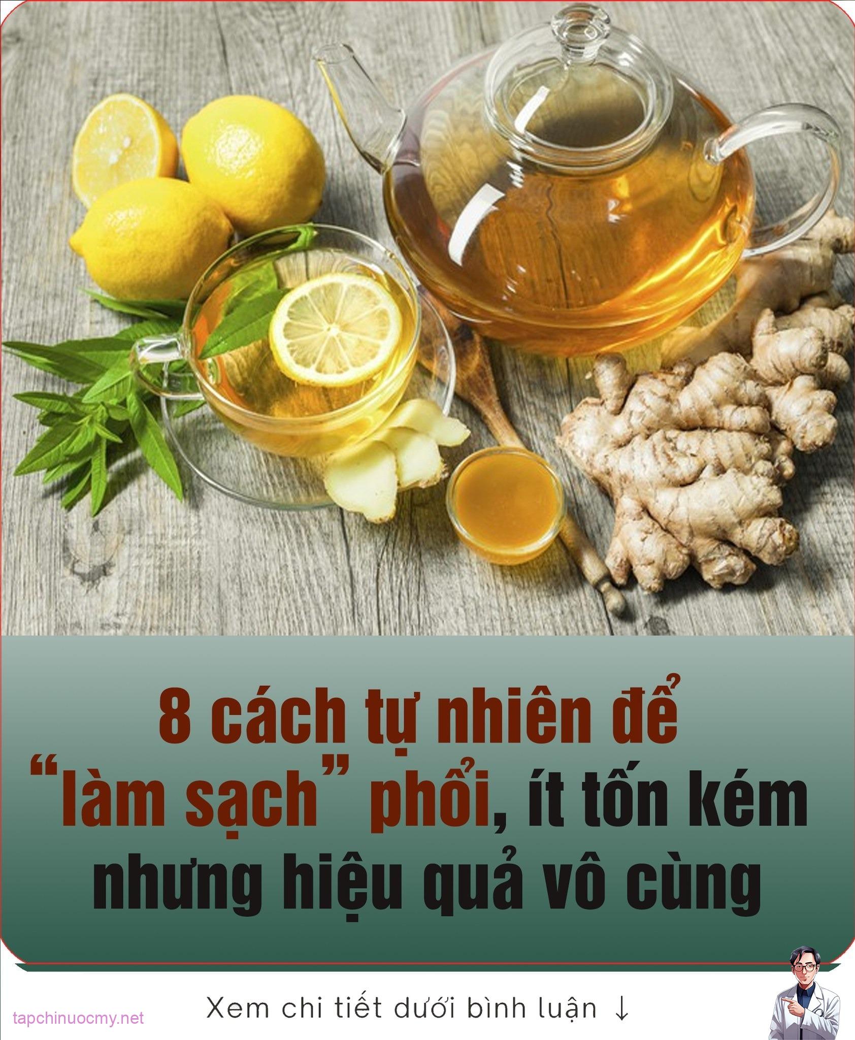 Các loại trà thảo mộc như gừng, rễ cam thảo và bạc hà có đặc tính chống viêm và long đờm tự nhiên. Chúng làm dịu đường thở, giảm kích ứng và hỗ trợ tống chất nhầy ra khỏi phổi, giúp hơi thở khỏe mạnh và trong hơn. Một tách trà thảo mộc mỗi ngày sẽ giúp giảm thiểu viêm và làm sạch phổi hiệu quả. Nhưng nhớ đừng uống khi quá nóng trên 60 độ C và không uống quá đặc.